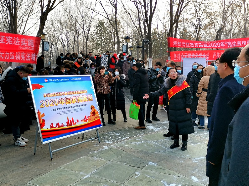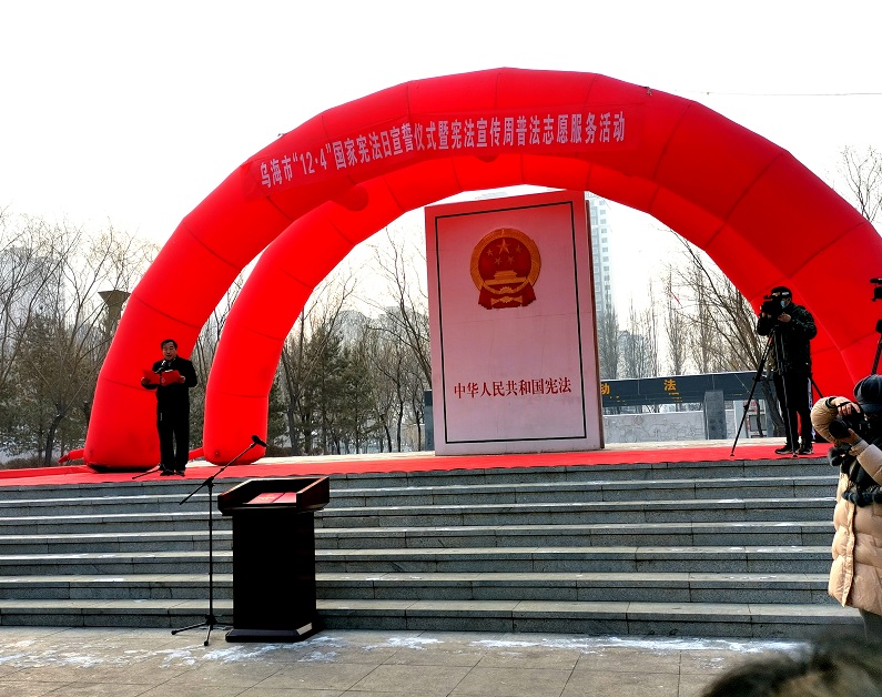 12月4日,按照《关于印发《2020年海勃湾区“宪法宣传周”工作方案》的通知》(海司发[2020]号)文件要求,我办派3人组成海勃湾区委编办普法志愿者队伍,积极参加“12·4”国家宪法日宣誓仪式暨宪法宣传周普法志愿服务活动,虔诚而庄严地在海勃湾区“法制公园”宪法碑下奏唱国歌、向《宪法》宣誓,积极发放《宪法》及《条例》宣传资料,热心细心耐心地为现场的基层群众和社会公众宣传解读《宪法》《条例》等有关内容,广泛宣传宪法知识、传播法治文化,推动宪法学习宣传全覆盖。